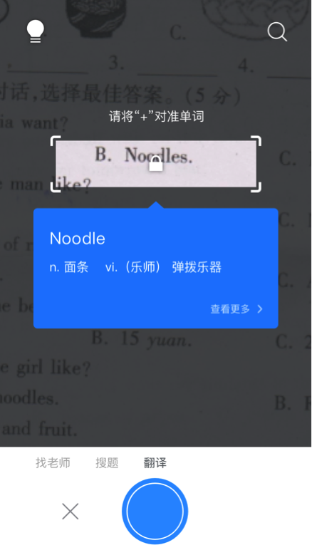 此外,新版將主要功能如拍照搜題、老師答疑和單詞翻譯統(tǒng)一整合到拍照搜題一個(gè)功能鍵位,用戶可直接通過(guò)左右滑動(dòng)的方式進(jìn)行切換。
