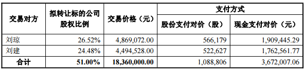 報(bào)告書披露,為完成本次交易,華博教育擬以13.49元/股的價(jià)格向劉瓊、劉建發(fā)行華博教育1088806股普通股 以支付交易對(duì)價(jià)80%價(jià)款,擬向劉瓊、劉建支付現(xiàn)金367.2萬元作為交易對(duì)價(jià) 20%價(jià)款,本次交易未涉及募集配套資。對(duì)價(jià)支付方式如下: