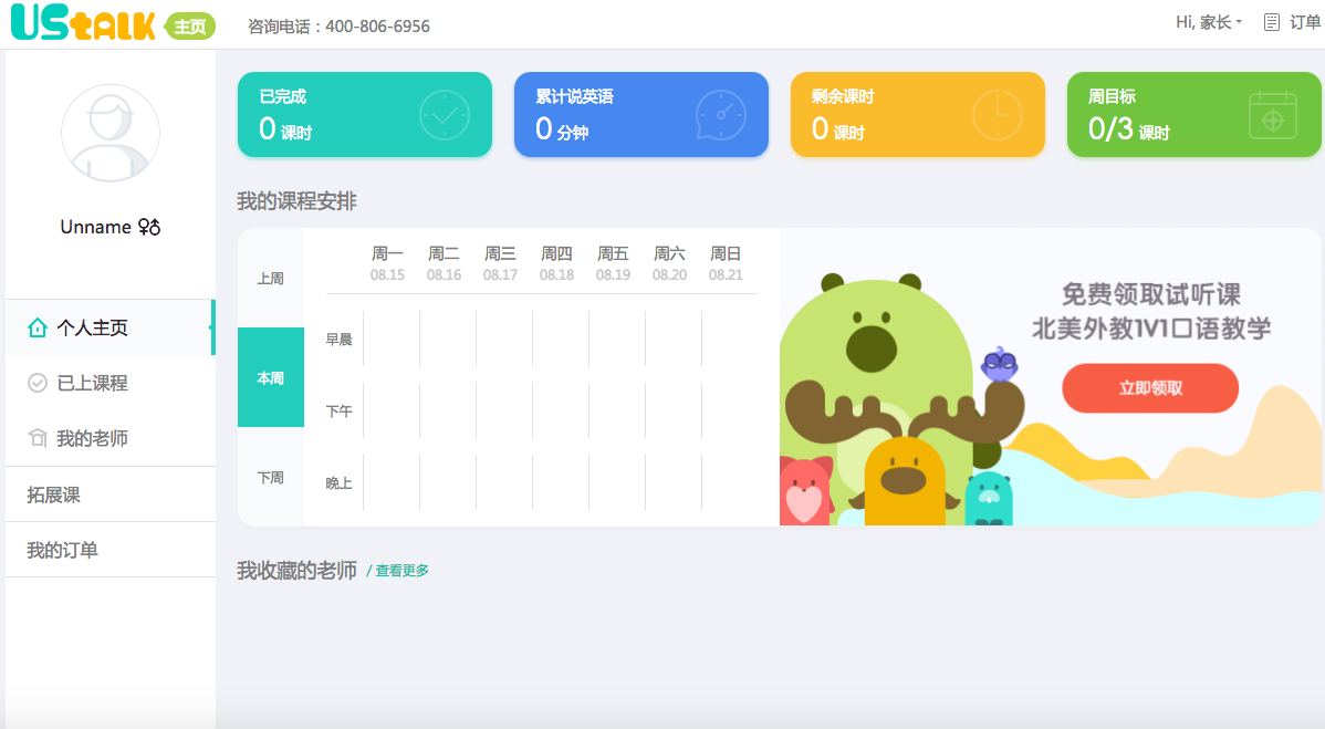 UStalk使用了老師預(yù)約機(jī)制,學(xué)員可以在7*12小時(shí)范圍內(nèi)預(yù)約老師,每次上課結(jié)束后,有助教與家長溝通,幫助家長即時(shí)獲知學(xué)員的學(xué)習(xí)情況。另外,每個(gè)級(jí)別還有四次綜合測(cè)評(píng)報(bào)告,幫助學(xué)生規(guī)劃學(xué)習(xí)計(jì)劃。