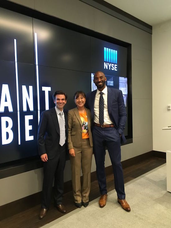 (Bryant Stibel合伙人Jeff Stibel、VIPKID創(chuàng)始人兼CEO米雯娟和科比)