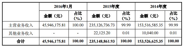 轉讓說明書顯示,2014年度、2015年度、2016年1月,公司主營業(yè)務收入分別為1.53億元、2.35億元、4595萬元;凈利潤分別為1217萬元、3067萬元、998萬元。