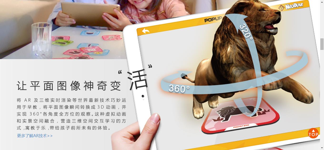 小熊尼奧創(chuàng)始人熊劍明表示,在普通家庭中,大多數(shù)的家長們嘗試為孩子營造實體的教育環(huán)境,但更多的孩子還是喜歡抱著手機(jī)與平板電腦等科技產(chǎn)品,這是現(xiàn)實中的很大矛盾點,小熊尼奧推出的AR產(chǎn)品,是在嘗試把教育產(chǎn)品與科技交互,通過AR技術(shù)的疊加,在傳統(tǒng)玩具的基礎(chǔ)上融入教育和科技。