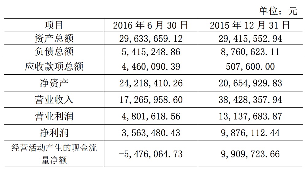 公告顯示,截至2016年6月30日,智游臻龍資產(chǎn)總額2963.36萬元,凈資產(chǎn)2421.84萬元。2015年度及2016年1-6月,公司分別實現(xiàn)營業(yè)收入3842.84萬元、1726.6萬元,凈利潤分別為987.61萬元、356.35萬元。