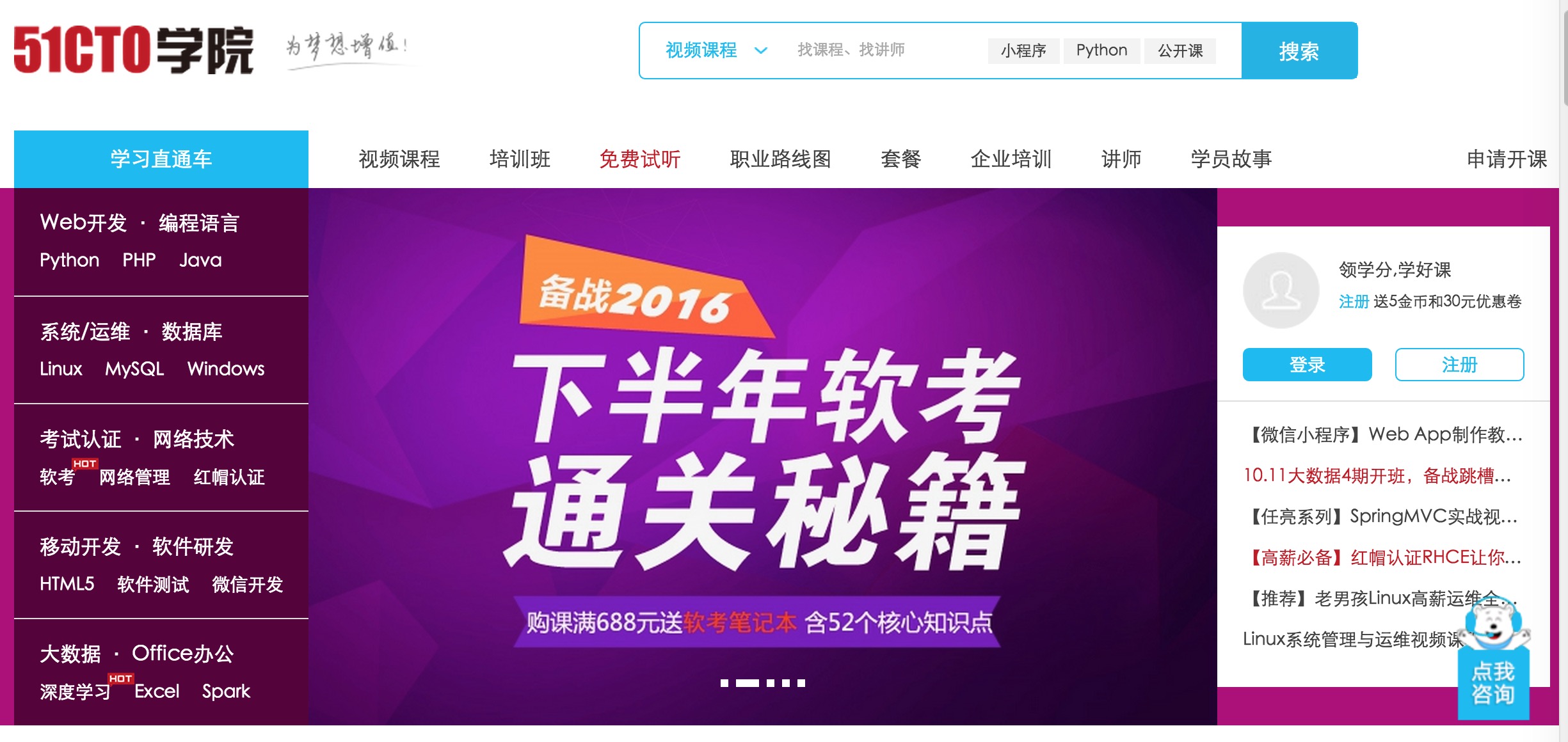 目前,51CTO學院主要分為兩類課程,一類是自主學習類課程,這類課程客單均價在100元左右(根據課程時間長短不同,也有千元以上的系統(tǒng)課程,或5元一節(jié)的小課),提供視頻、資料和答疑服務;另一類是輔導班課程,這類課程均價在5000元左右,51CTO為學生提供深度的督促和輔導服務,并且在每個學習階段結束后,學生需要通過考核才可以進入下個階段的學習。