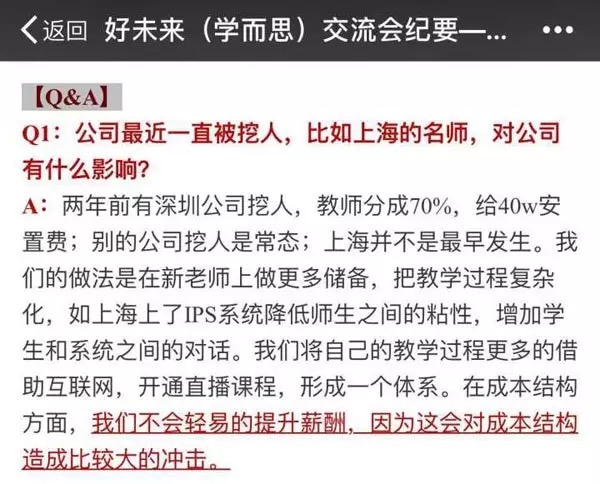 據(jù)傳,有的名師提出離職,部分學(xué)而思校區(qū)竟然開出一下上漲15級課時費的條件。