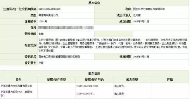 江光奇(創(chuàng)始人)和投資方通過樂課力文化公司和樂課力投資公司實際控股全國樂課力的所有分校,掌握樂課力的絕對控制權(quán)。