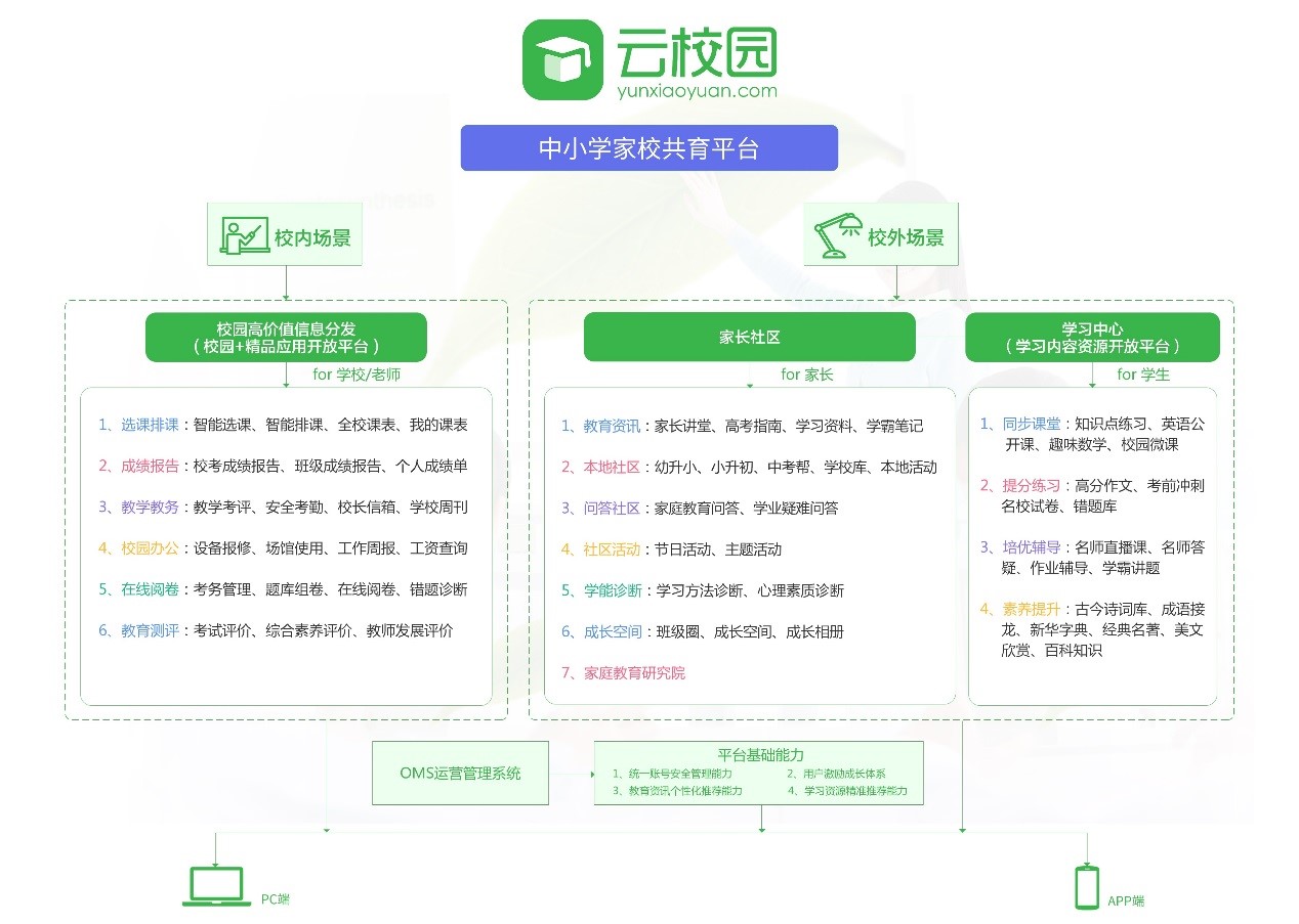 目前,拓維信息已有的云校園平臺(tái)包含了對(duì)學(xué)校和老師的校內(nèi)場(chǎng)景,即“校園+應(yīng)用開(kāi)放平臺(tái)”,以及對(duì)家長(zhǎng)的“家長(zhǎng)社區(qū)”和對(duì)學(xué)生的“學(xué)習(xí)中心”。