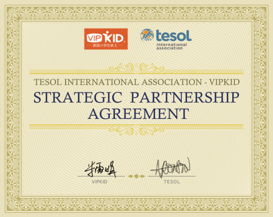(VIPKID與TESOL國際聯(lián)盟達成戰(zhàn)略合作證書)