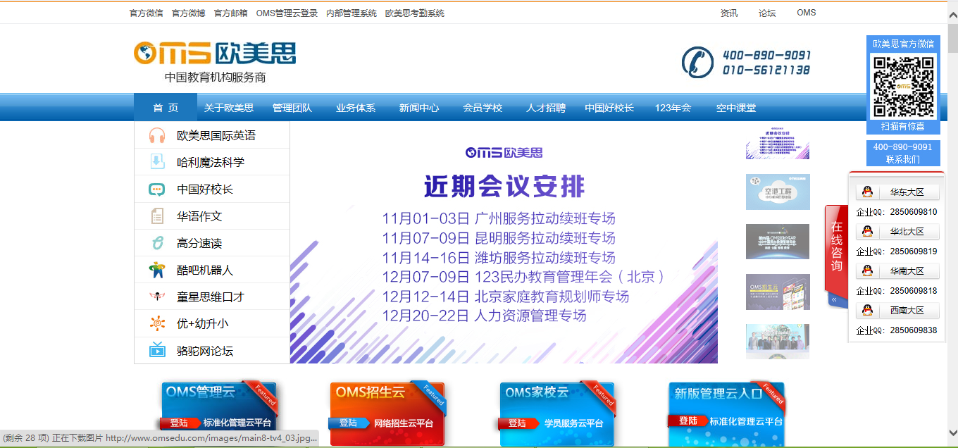 歐美思官方介紹,管理解決方案包括管理云平臺、管理運營手冊、校長管理培訓、骨干技能培訓、員工職業(yè)培訓、名校參訪服務(wù)、招生實戰(zhàn)服務(wù)、家庭教育講師培訓、中國好校長和網(wǎng)絡(luò)空中課堂等10大增值服務(wù)。