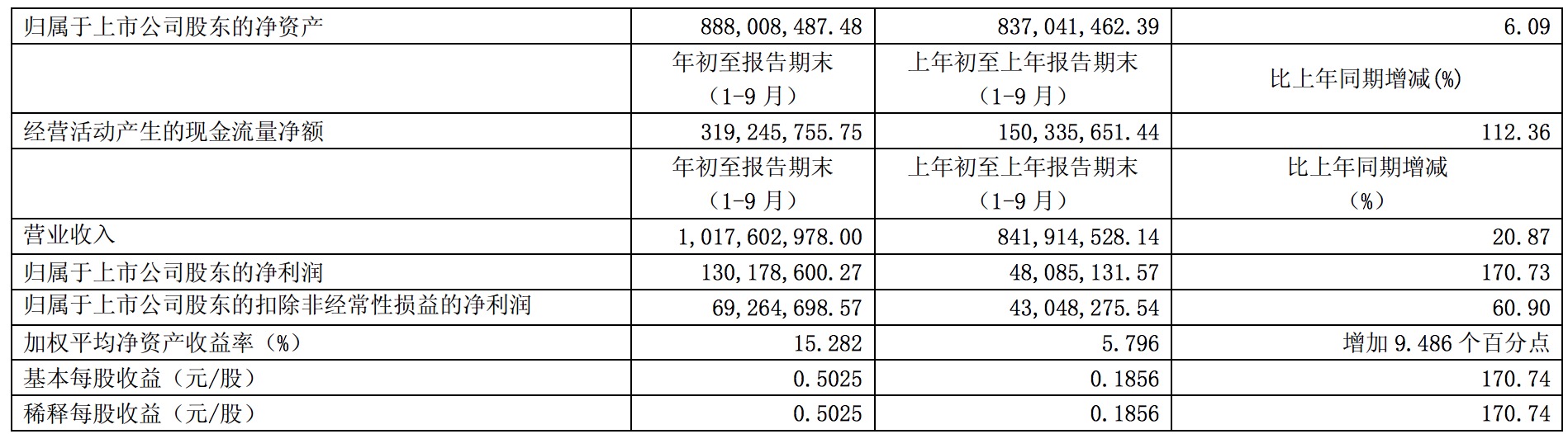 財(cái)報(bào)顯示,營業(yè)收入10.18億元,同比增長20.87%;歸屬于上市公司股東的凈利潤1.3億元,同比增長170.73%;歸屬于上市公司股東的扣除非經(jīng)常性損益的凈利潤6926.47萬元,同比增長60.90%。