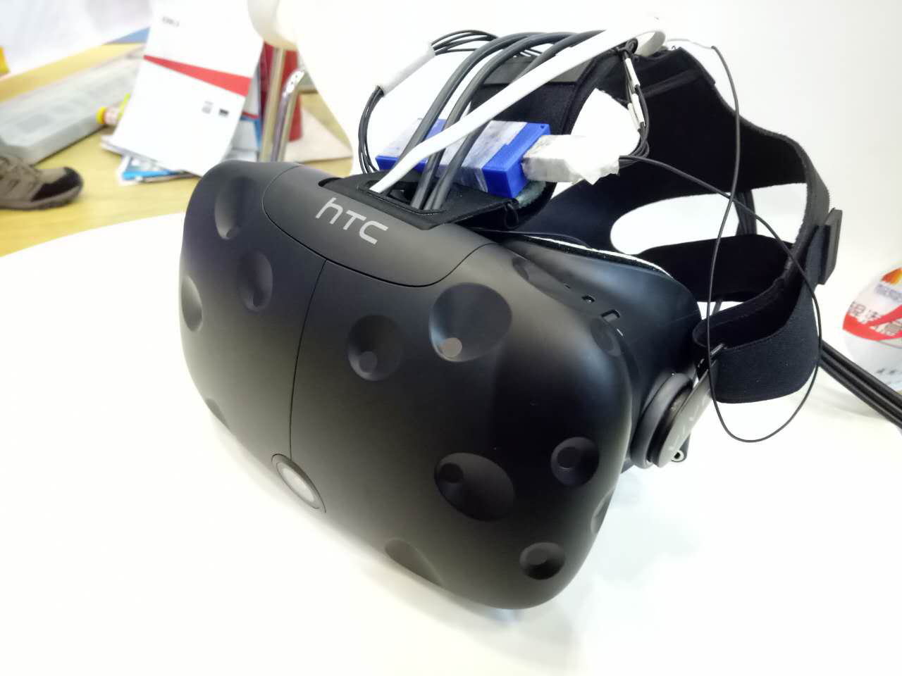 這款VR頭盔前部配有腦電采集裝置(藍色盒子部分),用于捕捉學生使用時腦電波呈現(xiàn)的相關(guān)數(shù)據(jù)。