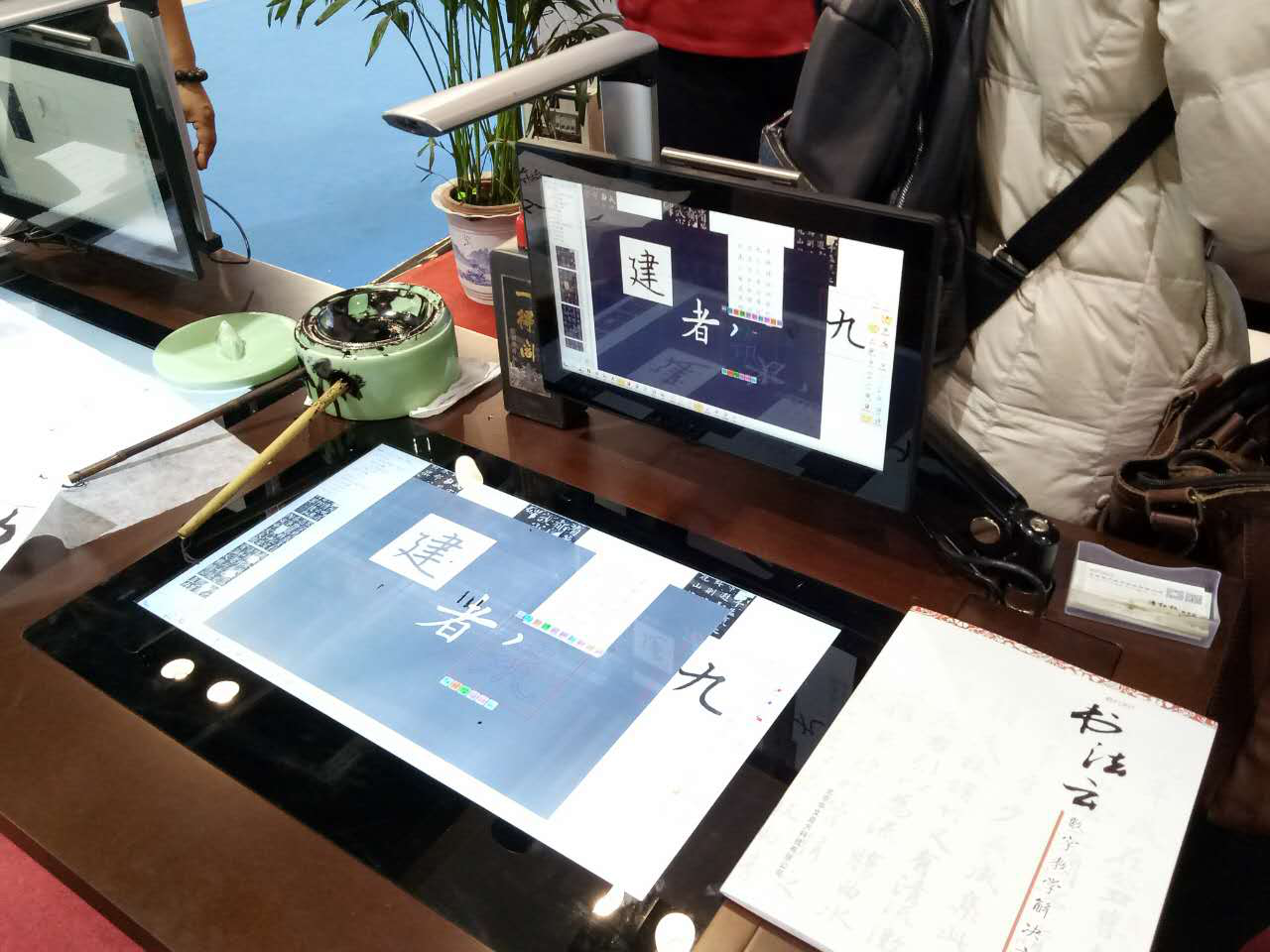 書法云教學系統(tǒng)在軟件方面包括可以進行字體比對和結(jié)構(gòu)分析的教學輔助軟件、硬筆軟筆字集字帖、教學課件等,硬件方面則有老師用的書法教學儀和學生用的數(shù)字書法桌,目的是利用大數(shù)據(jù)技術(shù)增強師生互動,提高學生臨摹和分析的效率。