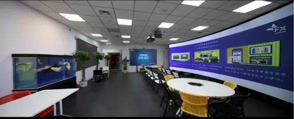 這面130寸LED液晶屏,代替了大部分公司常見的前臺形象墻,吸引著來客的目光。大廳右側,則是一個300寸的環(huán)形幕布。幕布前方,整齊地擺放著幾排椅子。這一切,儼然就是一個雙師課堂教室的縮影。負責人介紹說,這是威渡科技的“體驗中心”,300寸大幕是為大型教室或階梯教室準備的解決方案。