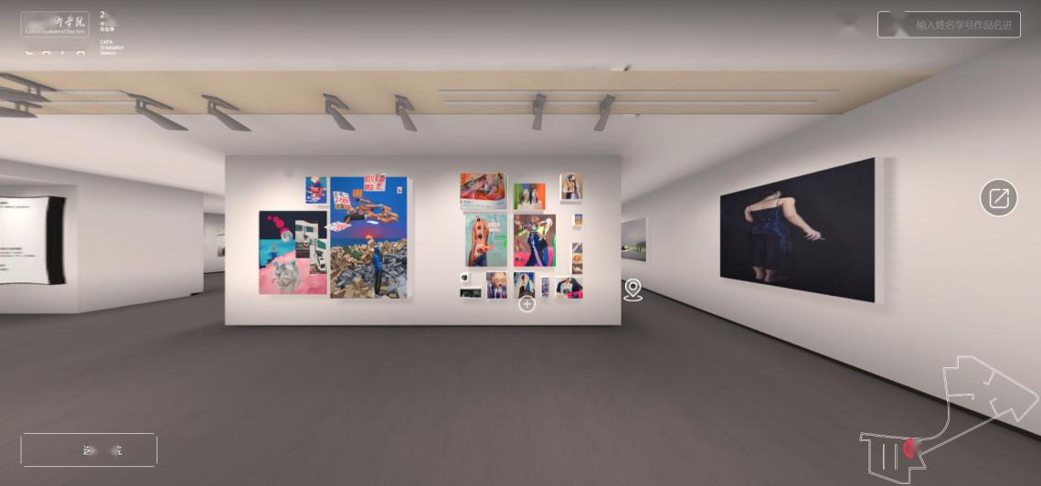 (中央美院使用網(wǎng)龍的技術支持為畢業(yè)展打造的“云端美院”虛擬美術館展廳內(nèi)部)
