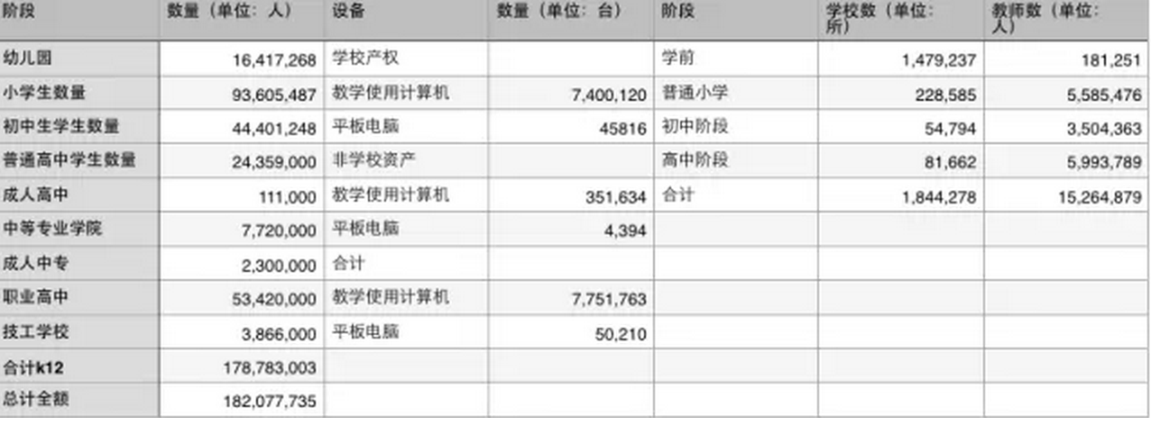 (2014教育部公布的中國k12學(xué)生數(shù)量和老師數(shù)量,摘自《想做K12,智商都差不多,輸贏關(guān)鍵看“情商” 》)