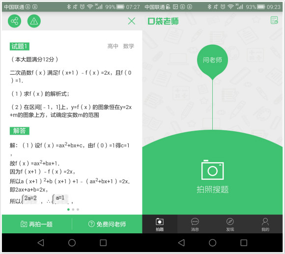 多知網(wǎng)試用口袋老師發(fā)現(xiàn),其拍照答疑功能與其他幾家別無二致。學(xué)生也可以選擇拍題或者輸入文字的形式,這樣題目會直接發(fā)給后端的老師解答。老師解答問題采取了搶單的模式,多知網(wǎng)分別于23:40和早上7點(diǎn)20發(fā)布題目,發(fā)現(xiàn)在1秒鐘之內(nèi)均有老師搶單并隨后解答給出答案,學(xué)生得到答案后仍能跟老師文字或語音交流和追問,并決定是否采納老師的答案。
