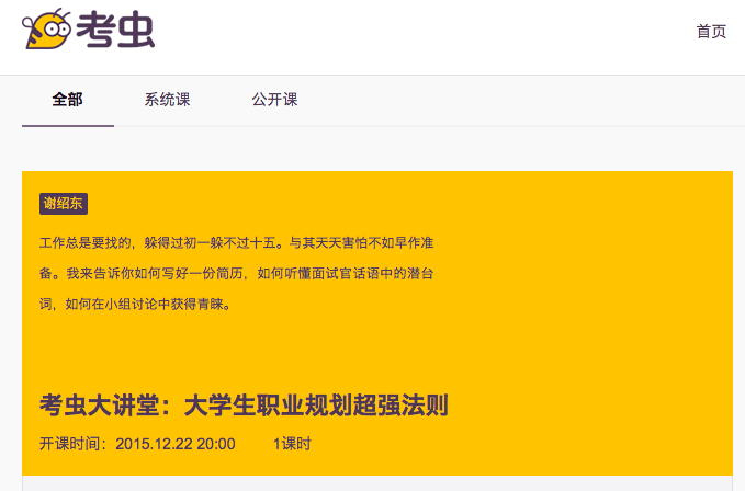 所以在考蟲身上不難看到三個元素:第一,精品內(nèi)容/服務(wù)策略;第二,高度標(biāo)準(zhǔn)化的課程體系;第三,做有情感,有溫度的產(chǎn)品。