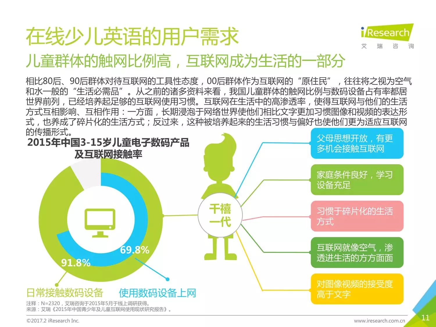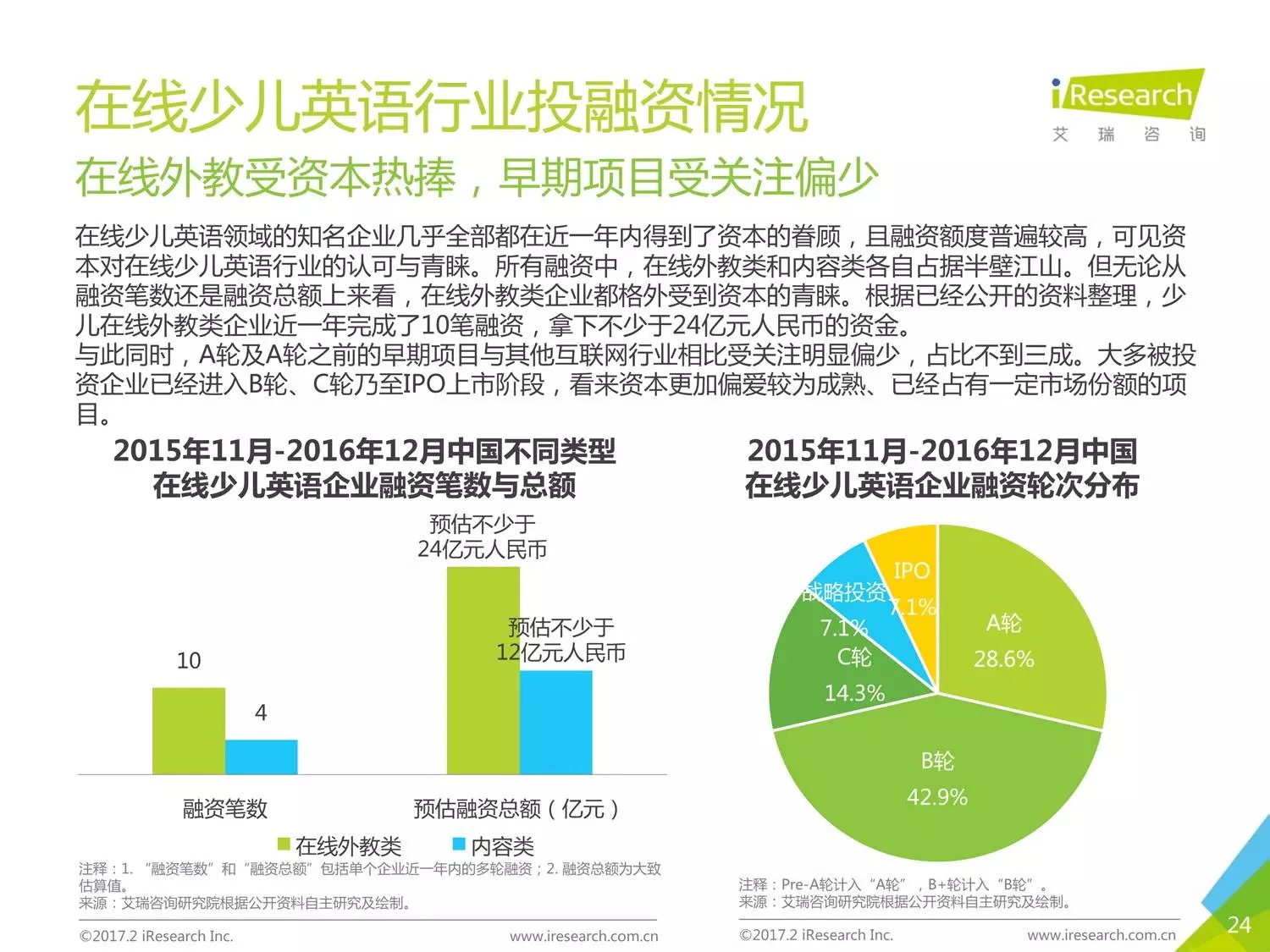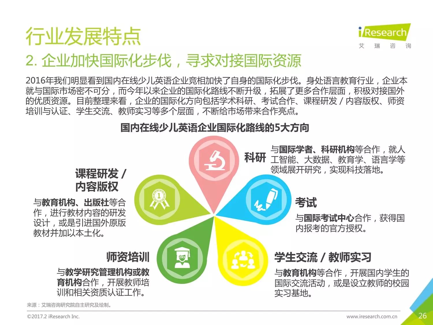 本報(bào)告以時(shí)下幾家比較受關(guān)注的公司為聚焦點(diǎn),闡述了現(xiàn)在線少兒英語(yǔ)的發(fā)展?fàn)顩r。