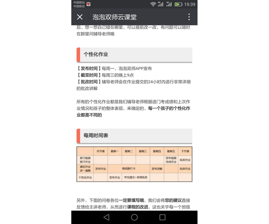 課后作業(yè)學(xué)生通過手機APP提交,輔導(dǎo)老師看似是給每個學(xué)生單獨批改和分析一遍,其實大部分講解內(nèi)容都是輔導(dǎo)老師統(tǒng)一錄制的,只有個性化的部分才需要輔導(dǎo)老師給每個學(xué)生單獨講解。