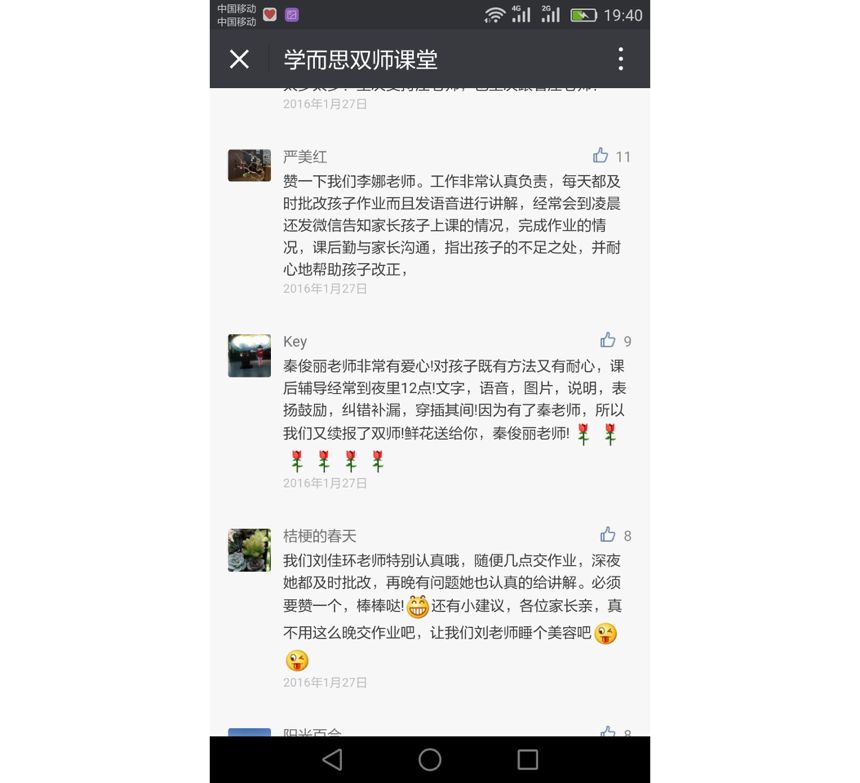 “學(xué)而思雙師的輔導(dǎo)老師給我孩子批改作業(yè)到12點,很負(fù)責(zé)?!?/p>