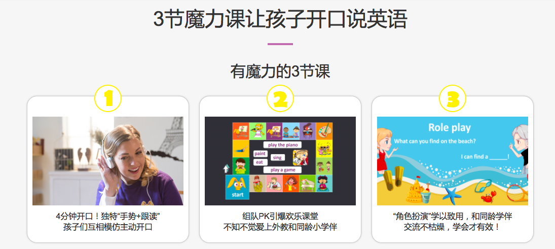 一開始,老師不停的用英語解釋英語,小孩會越來越聽不懂?!拔覀冇X得這樣不行,我們對自己產(chǎn)品的特征有信心,所以對外教說,如果提問超過2次沒有回答正確,可以先跳過去,在后面再返回來。因?yàn)檫@個小孩會去觀察其他小孩的反應(yīng),他/她不會偷懶,小孩最不愿意在同齡人面前丟臉,這會激發(fā)起他的好勝心。”