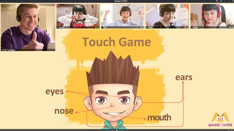 魔力耳朵教研負責人表示,少兒英語教育的本質(zhì)是要讓孩子輕松愛上說英語,魔力課堂圍繞“啟發(fā)、模仿、競爭、協(xié)作、實踐”五大核心環(huán)節(jié)設計,“啟發(fā)”與“模仿”能讓孩子極大降低挫敗感、“競爭”與“協(xié)作”激活孩子間交流的天性、“實踐”則讓孩子們學以致用。這些在一對一課堂中都難以見到?!澳ЯΧ涮剿鞒隽苏嬲脑诰€小班課教學法?!?/span>