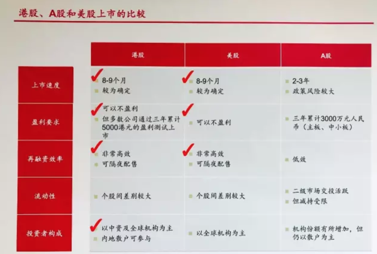 (港股、A股和美股上市比較)