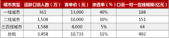 在線口語培訓市場測算(來源:華菁證券)