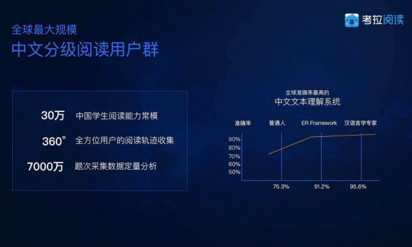 考拉閱讀的首席數(shù)據(jù)科學(xué)家趙博士表示,為開發(fā)ER Framework,考拉閱讀團(tuán)隊(duì)建立了全球最大的底層中文分級(jí)標(biāo)準(zhǔn)研究語(yǔ)料庫(kù)。以專家評(píng)鑒作為基準(zhǔn),ER Framework已達(dá)到93%準(zhǔn)確率,成為全球最領(lǐng)先的中文文本理解分級(jí)系統(tǒng)。