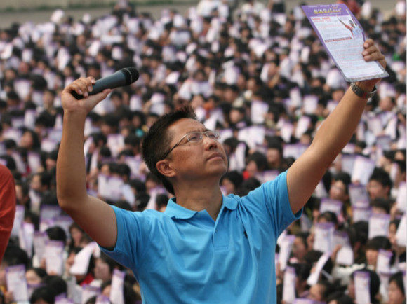 學(xué)英語是為什么? Make money(賺錢)!當(dāng)年李陽在故宮太廟大殿前,對著當(dāng)時近萬名信徒這樣喊道。