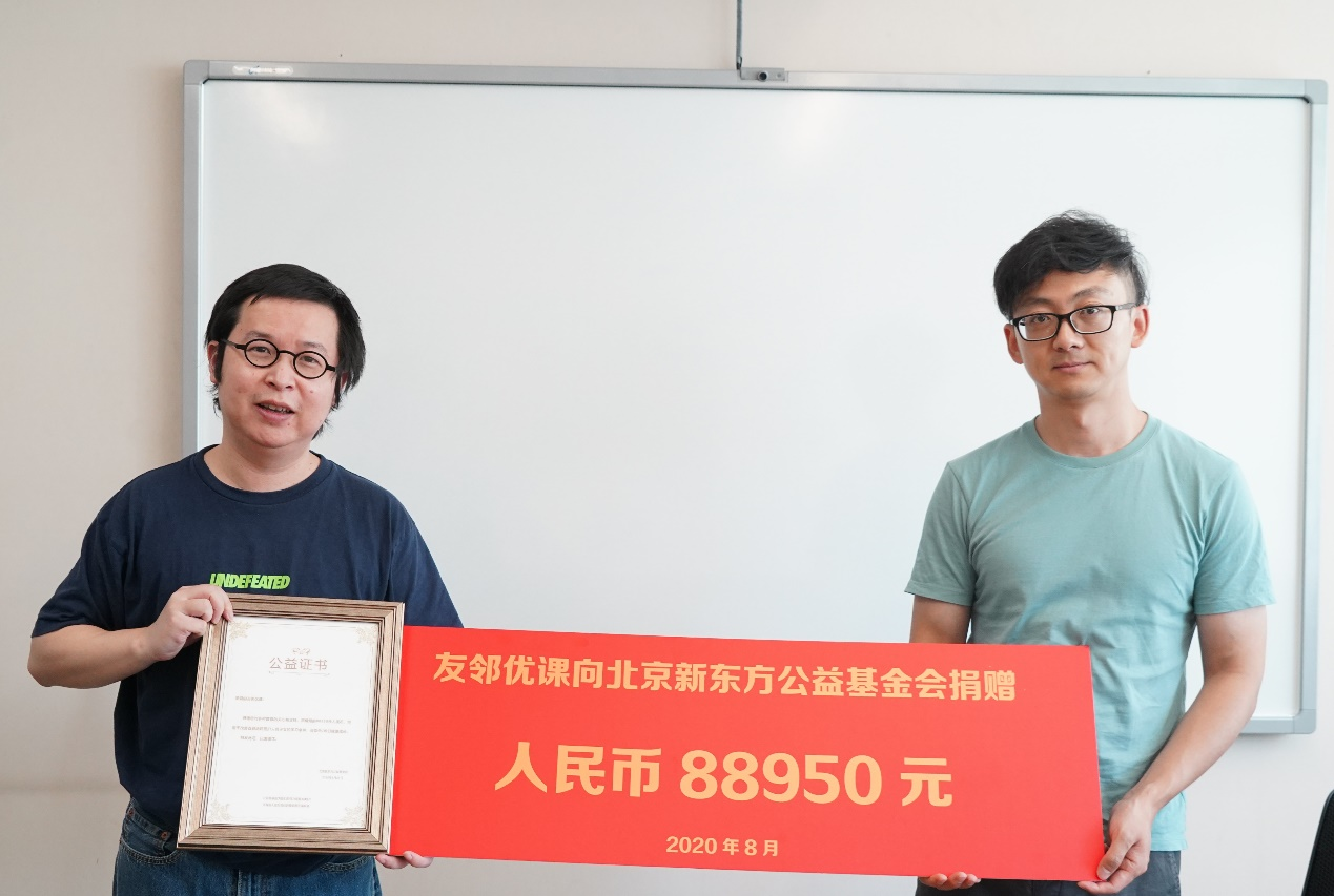 (友鄰優(yōu)課向北京新東方公益基金會(huì)捐贈(zèng)人民幣88950元)