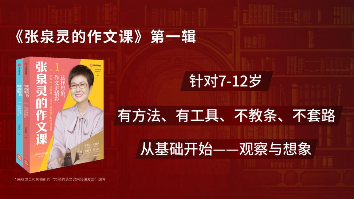 《作文課》針對7-12歲小學(xué)生寫作,圍繞觀察和想象分為上下兩冊,據(jù)了解,這是第一輯,后續(xù)少年得到將針對人物和敘事繼續(xù)出版《張泉靈的作文課》第二輯,基本覆蓋了小學(xué)階段作文寫作的主要類型。