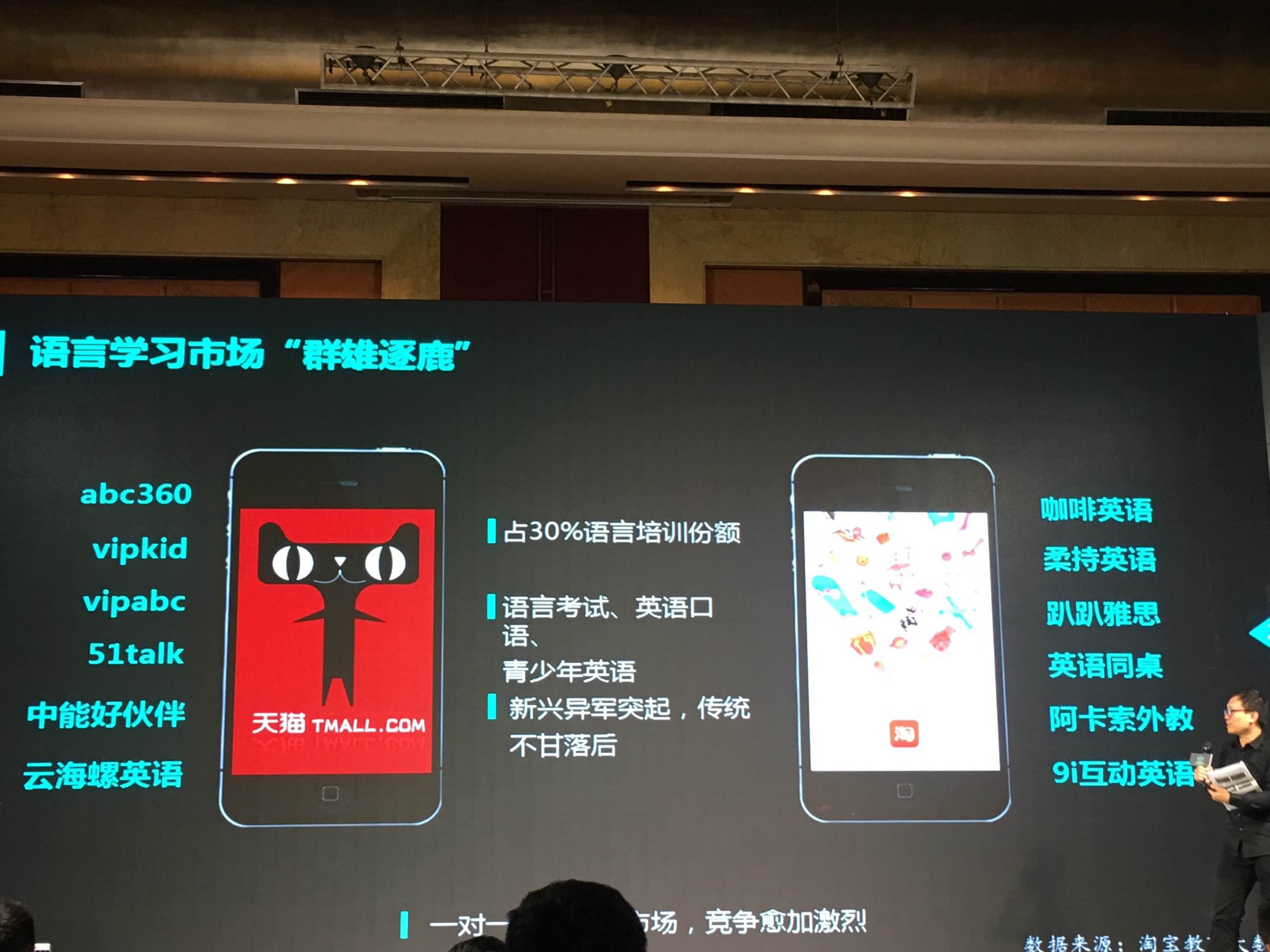 語(yǔ)言培訓(xùn)的激烈競(jìng)爭(zhēng)同樣體現(xiàn)在淘寶教育平臺(tái)上, abc360、vipkid、vipabc、51Talk等常見(jiàn)品牌在淘寶教育上群雄逐鹿。