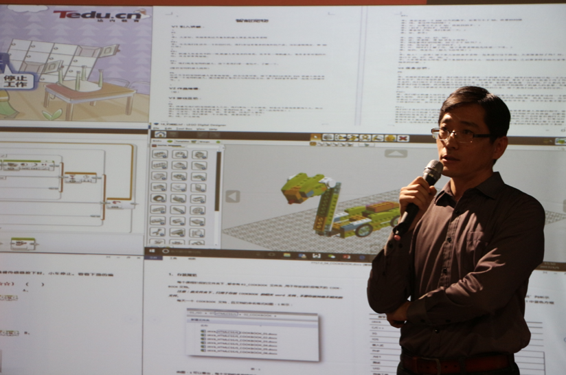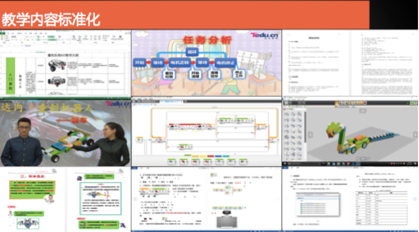在教學(xué)內(nèi)容的標準化上,達內(nèi)做的非常全面,花費的成本也很高。剛才我舉例,在少兒機器人的課程上,從小學(xué)做了520個課時的規(guī)劃,每一節(jié)的課程都包含研發(fā)內(nèi)容和課程大綱。我們上課用的PPT,要求錄制視頻老師也要有劇本,就跟背臺詞一樣。