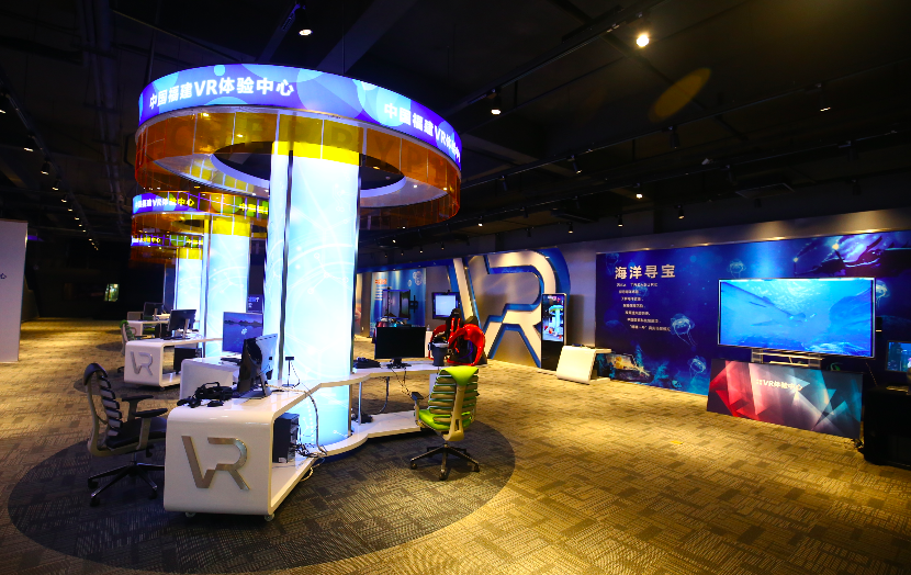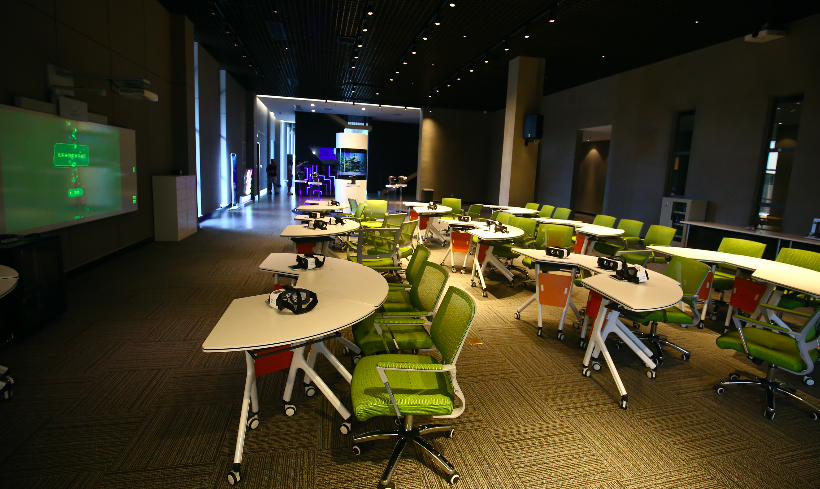 目前VR體驗中心包含5塊體驗區(qū):成果展示區(qū)、休息區(qū)、沉浸教室、應(yīng)用體驗區(qū)、樂空間。