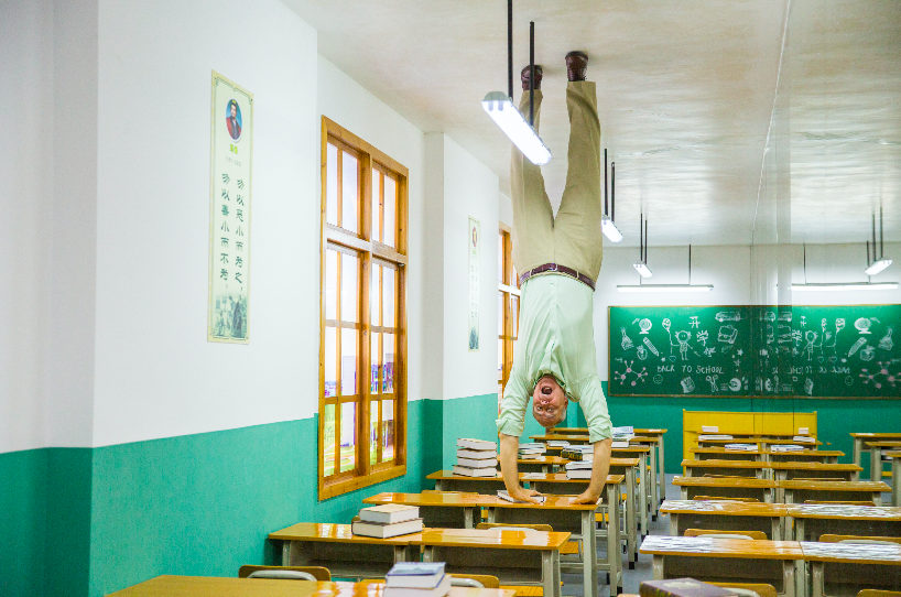 “翻轉(zhuǎn)課堂”原本只是一個授課的方式,可是,他們居然真的把課桌椅給摁到天花板上去了……