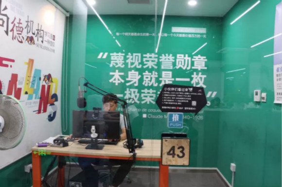 晚上7點(diǎn),老師們陸續(xù)走進(jìn)直播間,直播間坐落在每層辦公區(qū)的外圍,每層樓的直播間也會(huì)有各自的風(fēng)格。