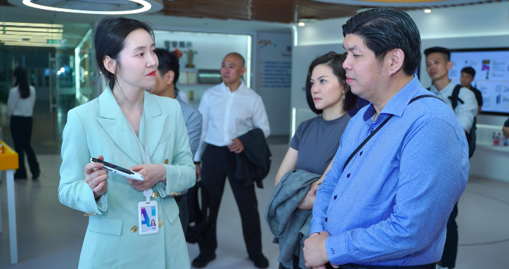 在科大訊飛小鎮(zhèn)的淘云科技展廳,王珩以歷史時(shí)間為軸,介紹淘云科技十多年來(lái)發(fā)展歷程的重要事件,并從核心技術(shù)能力、科學(xué)教育理論、專業(yè)系統(tǒng)內(nèi)容、智能服務(wù)平臺(tái)等多維度,詮釋其在兒童AI教育創(chuàng)新領(lǐng)域的“淘云樣板”。李白彬一行也深入了解了阿爾法蛋兒童陪伴機(jī)器人、益智機(jī)器人、AI學(xué)習(xí)助手等品類特點(diǎn)。