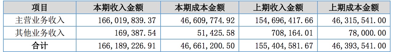 報(bào)告期內(nèi),中教股份主營(yíng)業(yè)務(wù)收入1.66億元,成本金額4660.98萬(wàn)元;其它業(yè)務(wù)收入16.94萬(wàn)元,成本金額5.14萬(wàn)元。