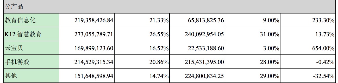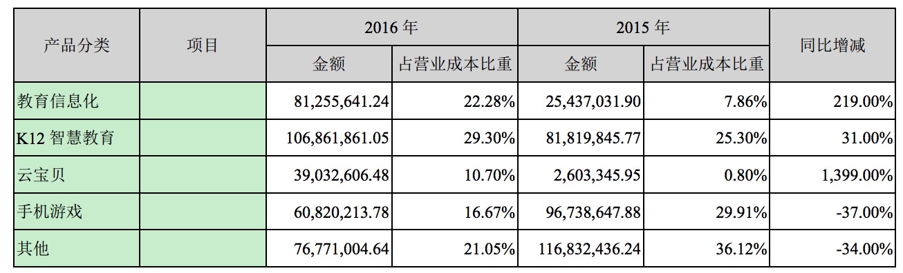 其中,K12智慧教育成本1.07億元,占比29.30%;教育信息化成本8125.56萬(wàn)元,占比22.28%;云寶貝成本3903.26萬(wàn)元,占比10.70%。