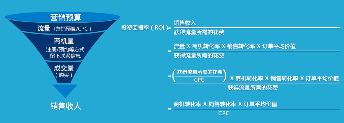 網(wǎng)絡(luò)營(yíng)銷的投資回報(bào)率(ROI)高低是由營(yíng)銷漏斗的不同環(huán)節(jié)共同作用的, 如果我們抽絲剝繭一下,就會(huì)發(fā)現(xiàn)ROI其實(shí)跟流量無(wú)關(guān),而是跟其他幾個(gè)因素有關(guān):