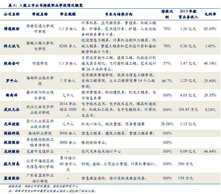 除下表以外,其他旗下持股職業(yè)院校的上市公司還包括:立思辰、中國國航、南寧百貨、 勤上光電、天源迪科、冀東水泥、柳工、同方股份、棕櫚園林、史丹利、申華控股、曙光股份、華發(fā)股份、遼寧成大、寧波港、長城汽車、康耐特、國藥一致、豫園商城、交運(yùn)股份、隧道股份、大連國際、鳳凰傳媒等。