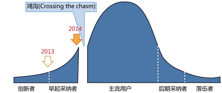 越來(lái)越多的低頭族,接近飽和的智能手機(jī)出貨量、不斷涌入的新人類員工、有增無(wú)減的學(xué)習(xí)壓力為移動(dòng)學(xué)習(xí)在企業(yè)的生根發(fā)芽提供了可能。據(jù)調(diào)查,在國(guó)內(nèi),超過(guò)39.2%的企業(yè)正在應(yīng)用移動(dòng)學(xué)習(xí),邱昭良博士曾發(fā)文將移動(dòng)學(xué)習(xí)目前的發(fā)展?fàn)顟B(tài)比喻為美國(guó)學(xué)者艾佛雷特·羅杰斯的創(chuàng)新擴(kuò)散曲線筆下的“早期采納期”,在他看來(lái),國(guó)內(nèi)移動(dòng)學(xué)習(xí)目前的發(fā)展僅僅處于收獲一批早期采納者期,接下來(lái)的發(fā)展有可能面臨兩種結(jié)局:要么借助早期采納者良好的口碑跨越鴻溝,收獲更大規(guī)模的主流用戶群;要么折戟在首批采納者的失敗體驗(yàn)上,無(wú)法迎來(lái)爆炸性的增長(zhǎng),最終跌落鴻溝,淪為只能炫目一時(shí)的曇花。