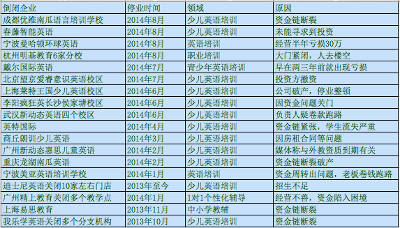 2013年10月至今倒閉的培訓(xùn)機(jī)構(gòu)或校區(qū)(多知網(wǎng)制圖)