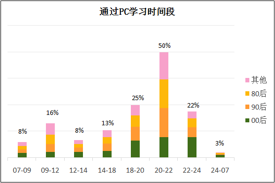 學習時段:用戶多選擇晚上學習,集中化明顯