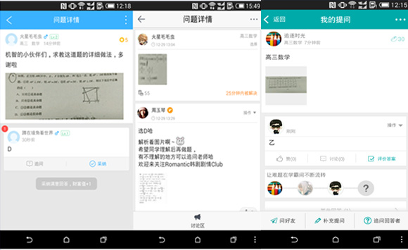 2014年,各類答疑軟件興起,無非分為三種形式:一是拍照答疑(機(jī)器識別),二是人工答疑,三是機(jī)器與人工混合答疑。此前,多知網(wǎng)對拍照答疑軟件進(jìn)行了評測。本次,多知網(wǎng)選擇了三款人工答疑軟件進(jìn)行評測,分別是作業(yè)幫、作業(yè)神器、愛考拉。