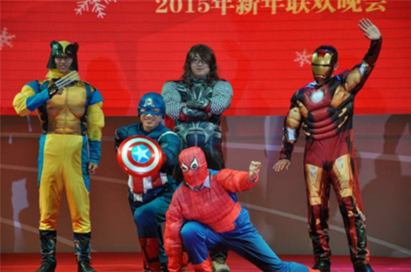 弘成教育:原來雷神的真身是女生,不明覺厲。金剛狼的頭和身體大小比例有點(diǎn)不和諧呀,每天無氧運(yùn)動(dòng)做的有點(diǎn)多吧。蜘蛛俠應(yīng)該是剛下班來趕場的,里面襯衣都來不及換。