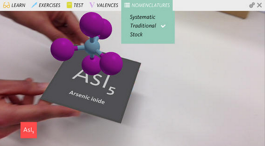 以這樣的思路,有很多學科的教學都能夠引入AR的技術。比如以上應用Chemistry101,除了已有的功能,還可以加入化學式的變化或者化學實驗的進行過程和反應結果,以此來讓學生加深印象。