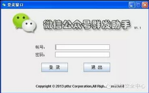 未經(jīng)騰訊書面許可使用插件、外掛或其他第三方工具、服務(wù)接入微信朋友圈和相關(guān)系統(tǒng)。例如:利用任何第三方工具或其他方式規(guī)避群發(fā)限制策略,包括但不限于用公眾平臺(tái)的單發(fā)功能來實(shí)現(xiàn)群發(fā)功能,意圖規(guī)避公眾平臺(tái)對(duì)于群發(fā)次數(shù)的限制等。下面是第三方工具登錄頁面之一: