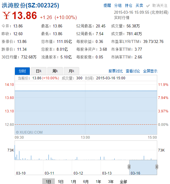 3月14日,洪濤股份發(fā)公告,2.3億收購跨考70%股權(quán)。今日早盤,洪濤股份一字漲停,漲停價13.86元。